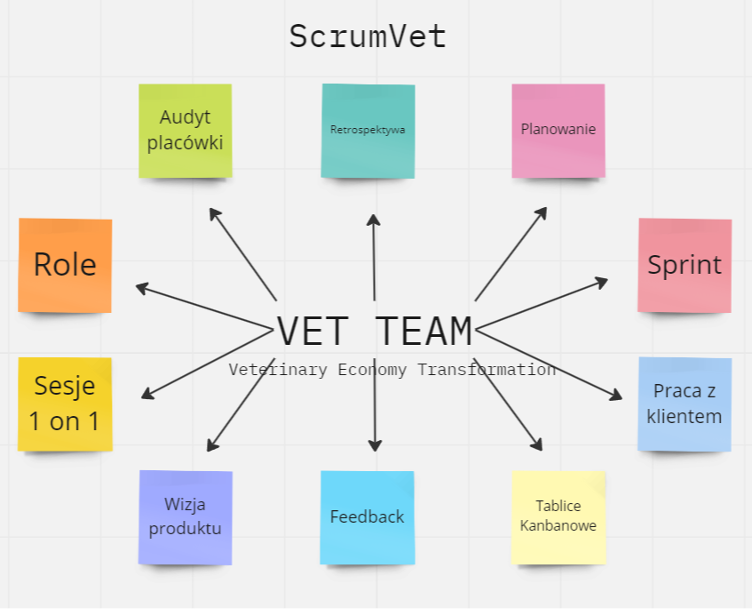 Nasze usługi dotyczą nie tylko zwiększenia jakości obsługi klienta, ale również wewnętrznej pracy każdej praktyki weterynaryjnej. Razem z naszymi klientami analizujemy słabe punkty działania ZLZ i pracujemy nad ich usprawnieniem. Określamy cel i schemat pracy odpowiedni dla danego zespołu. Z właścicielami pracujemy też nad wizją produktu oraz firmy. Ważna jest dla nas nauka samoorganizacji – chcemy, żeby w przyszłości nasi klienci byli w stanie sami poradzić sobie z nowymi obowiązkami i trudnościami. Do tego niezbędna jest praca nad pewnością siebie i podejmowaniem przemyślanych decyzji.